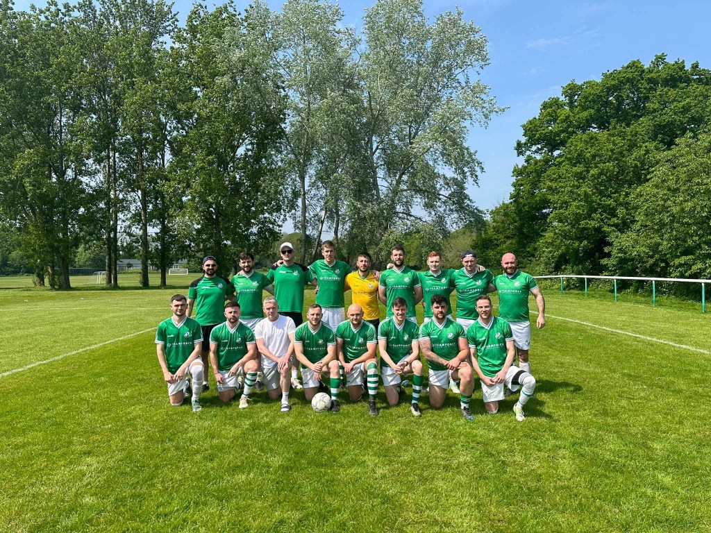 FC Irish of London faced Celtic in this big step 8 non-League match, in the Middlesex County Football League Premier Division One North & West, on Saturday. This was both side’s final league match of the 2023/24 season, and second place FC Irish of London needed to win this match against third place Celtic, by six goals, to win the league ahead of first place London Cheetahs. Played at Queens’ School Grounds, in Bushey, this really important game of football would finish 7-0 to FC Irish of London, and with that they celebrated winning the league title after the match. Ahead of this match, which was played on a very warm and sunny Saturday afternoon, the FC Irish of London outfield players had to wear their shirts inside out, because of there being a kit clash with the Celtic jersey.