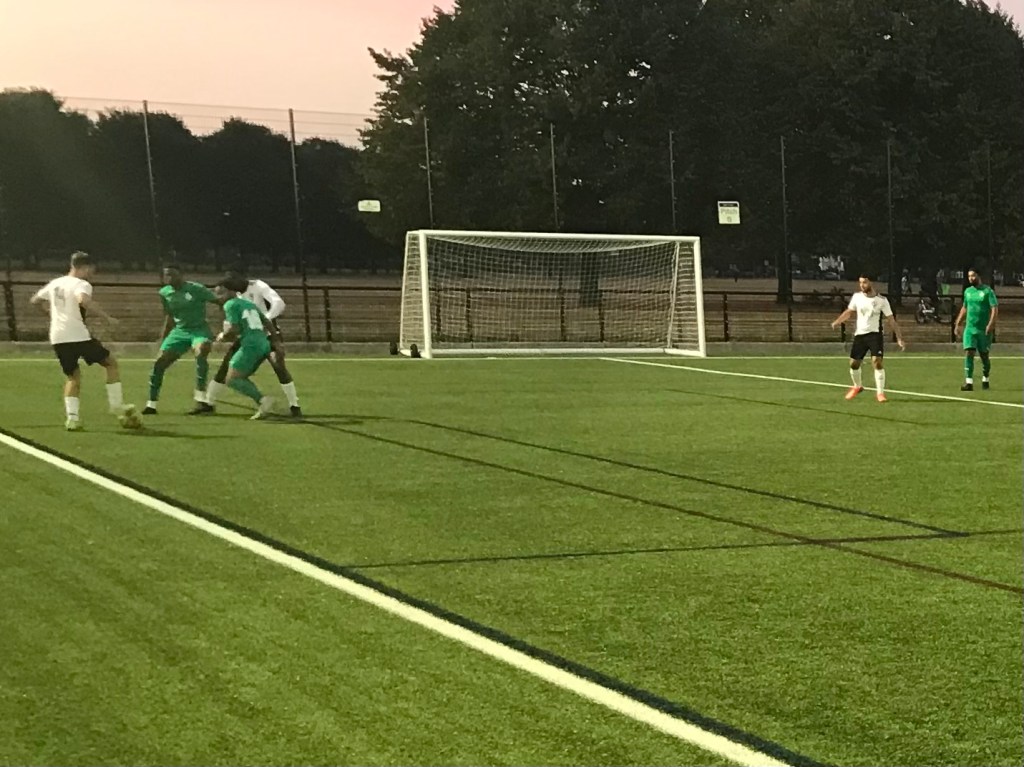 I was at Parsloes Park Hub on Friday night, for an Essex Alliance Football League Senior Division fixture between Waltham Forest Borough FC and Kulture FC. Waltham Forest Borough started this match in 13th place in the league standings, after three matches played (they’ve won one and lost two, of their three league matches). Kulture FC have drawn two and lost one of their opening three league matches, and they started Friday’s match in 14th place in the league. This step 7 match was won 5-4 by Kulture FC, in what was a real contender for match of the season. The game was started at a real pace and intensity. Kulture took an early lead in the match following a good move, which resulted in Kobi Osei receiving a pass on the right-hand side of the home team’s penalty area. And from there the Kulture player sent a good and clever lofted effort over the outrushing goalkeeper and into the goal, 0-1.