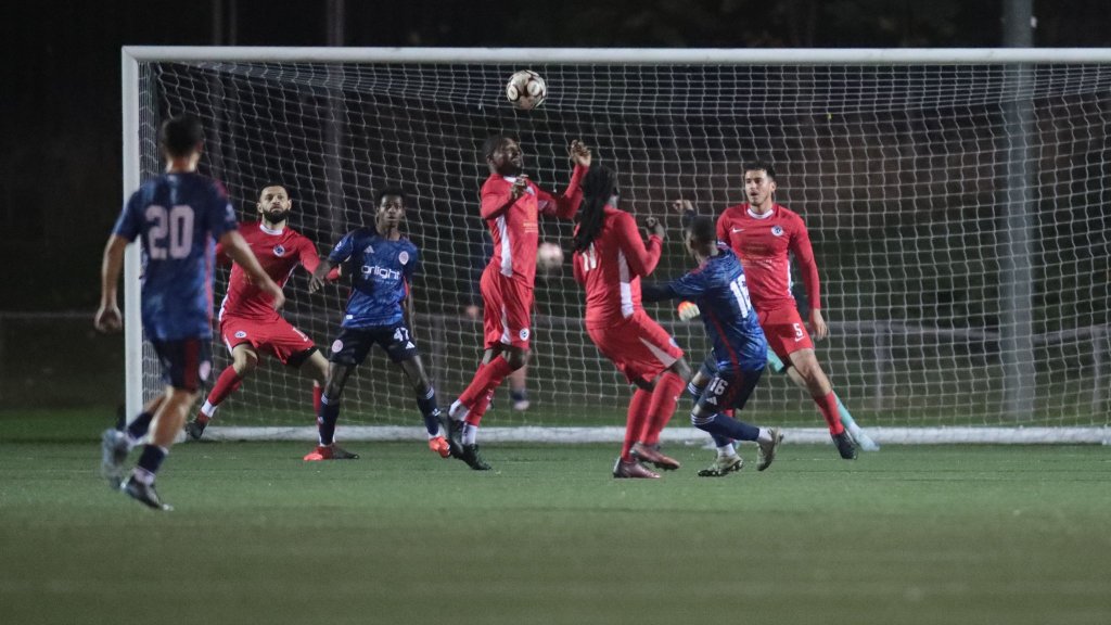 AS London have made a fine start to the Thurlow Nunn Football League First Division South, with seven league wins from their first 13 league matches played this season. The club who started this league fixture in eighth place in the league, faced an FC Baresi (they started this game in 14th place in the league) side on Wednesday night at New River Stadium, who were looking to respond following a 5-0 home loss to Dunmow Town on Saturday afternoon. This step 6 match was emphatically won 8-0 by AS London, who put in an outstanding team performance. Starting the game well, Francesco Zabotti’s AS London side would go on to create a number of good early goalscoring chances. Following a fine, surging forward run into the away team’s penalty area from an AS London forward, a low ball across goal wasn’t quite gathered by Baresi goalkeeper Harvey Simson. However, despite the AS London player’s calling for a penalty after he had initially rushed out of his goal, Simson would recover really well to then make a good stop at his right-hand post.