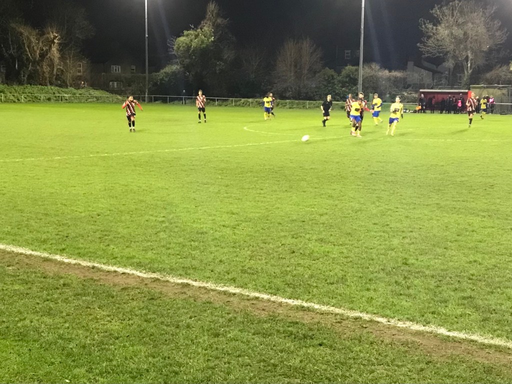 Clapton Community faced SC Thamesmead on Tuesday night at the Old Spotted Dog ground, in a second round tie of the SCEFL Division One Cup. In Division One of the SCEFL League, only goal difference currently separates ninth place Clapton Community with eighth place SC Thamesmead, in the league table. However, this was a cup game, which Clapton Community did very well in as a team, as they won the match 4-0. Clapton Community would create the first two goalscoring chances of this game, on a very cold night in east London. Firstly, and after Fred Taylor had received a short pass down the right-hand side of the SC Thamesmead penalty area, Taylor would go for goal. However, his powerful effort towards the goalkeeper’s near post was well blocked by the alert Joaldo Cravid. A couple of minutes later, Fred Taylor would get to the ball on the edge of the visitor’s penalty area, but his low effort was gathered by the goalkeeper, Daniel Carpanini.
