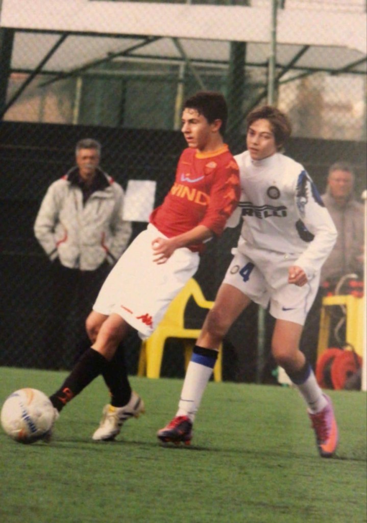 Being at the AS Roma football academy was a wonderful experience, and just walking through the sports centre there and seeing players like Francesco Totti, and Daniele De Rossi, was amazing. The level at the academy was extremely intense, with very good players (Lorenzo Pellegrini is a year older than Matteo, with Gianluca Scamacca and Davide Fratessi a couple of years younger than him) there, and I learned so much from all of the coaches who coached me there. I played there for five years in the youth academy. But after the five years, and there is a very tough selection process at the end of each season, I didn’t quite make the cut for the B team, in the Primavera. Frosinone then scouted me, and I joined them when they were in Serie A, at the time. Being at Frosinone was also a wonderful experience, and I was playing with the Primavera team, as well as training a couple of times with the Serie A team.