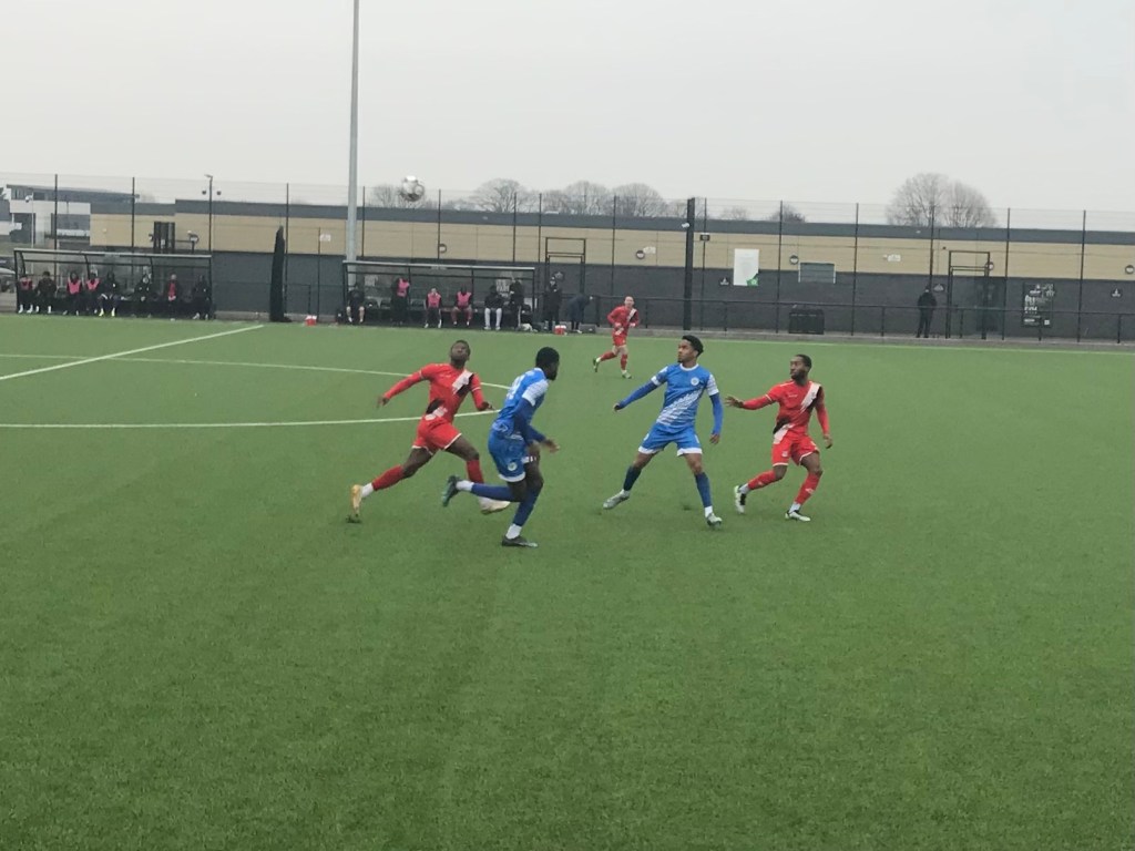 Baresi did manage to get their second goal of the game soon after that effort from Isaac Jacobs, with Kishawn James eventually getting to a Teyon Weston cross, inside of the home team’s box. James would then hit a great effort, with pace, into the top left-hand corner of the goal, 2-4. No sooner had Baresi managed to get back into the game again, May & Baker would score another goal, to this time effectively make sure of the win. As a result of a foul from Murat Karagul inside of the Baresi box, and on a May & Baker player, a penalty was awarded to the home side. And Tom Cottle-Wood would clinically find the bottom right-hand corner of the goal, from the penalty spot, 5-2. Baresi’s captain, Edson Lami, was then sin-binned, to make the afternoon even more difficult for the visiting side. And then shortly after Ahmed Abdulla had hit a powerful effort wide of Ryan Bungaradu’s goal from the edge of the penalty area, a good forward move from May & Baker would result in them extending their lead further.