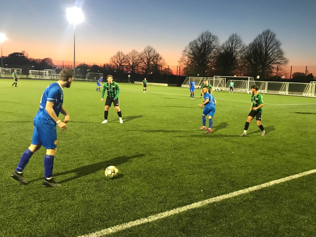 Fairlop Rovers’ home Essex Alliance Football League Senior Division fixture with Chadwell Heath Spartans, was played at Parsloes Park Hub, on Monday night. Fairlop Rovers came in to this game in really fine form, and they started this match in tenth place in the Senior Division table, after 25 matches played. Chadwell Heath Spartans started this match in sixth place in the league table, after 25 matches played. It was Fairlop Rovers who won this match, 4-1. Shortly after Billy Gipp had done well to work the space to get an effort away on the Fairlop goal (from 25 yards out), which was held by Fairlop goalkeeper, Kufre Inua, the home side would take an early lead. A clever bit of skill from Jean-Pierre Alexander would see him knock the ball around a Spartans defender, down the right-hand side of the pitch, before he went forward with the ball and then played a pass to Jack Kibblewhite, on the right-hand side of the visitor’s penalty area. He would then pass the ball across to Matthew Stratton, on the opposite side of the box, from where he would finish low into the goal past the outrushing goalkeeper, 1-0.
