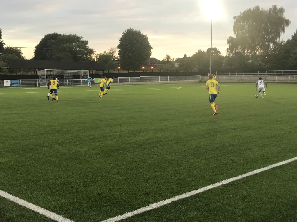 This was proving to be quite an even and cagey game of football. After Dimitri Christou had sent a lofted pass from the left-hand side of the Lymore box, to find Peter Angelov at the back post, it would result in Angelov heading the ball in to the side-netting of the goal. Next, and at the opposite end of the pitch Gravlyn Kitondo’s free-kick effort from 25 yards out on the Woodford goal, was helped behind by the Woodford goalkeeper. And then towards the end of the first half, a fine through-ball pass from Alex Coster would find the run of Dylan Roberts in behind of the Woodford defence. Roberts was met by the outrushing Woodford goalkeeper, who fouled him. This resulted in a free-kick, right on the edge of the Woodford box, being awarded to Lymore. Dylan Roberts’ resulting low and powerful free-kick effort would go narrowly wide of Pharrell Chinyere’s left-hand post.