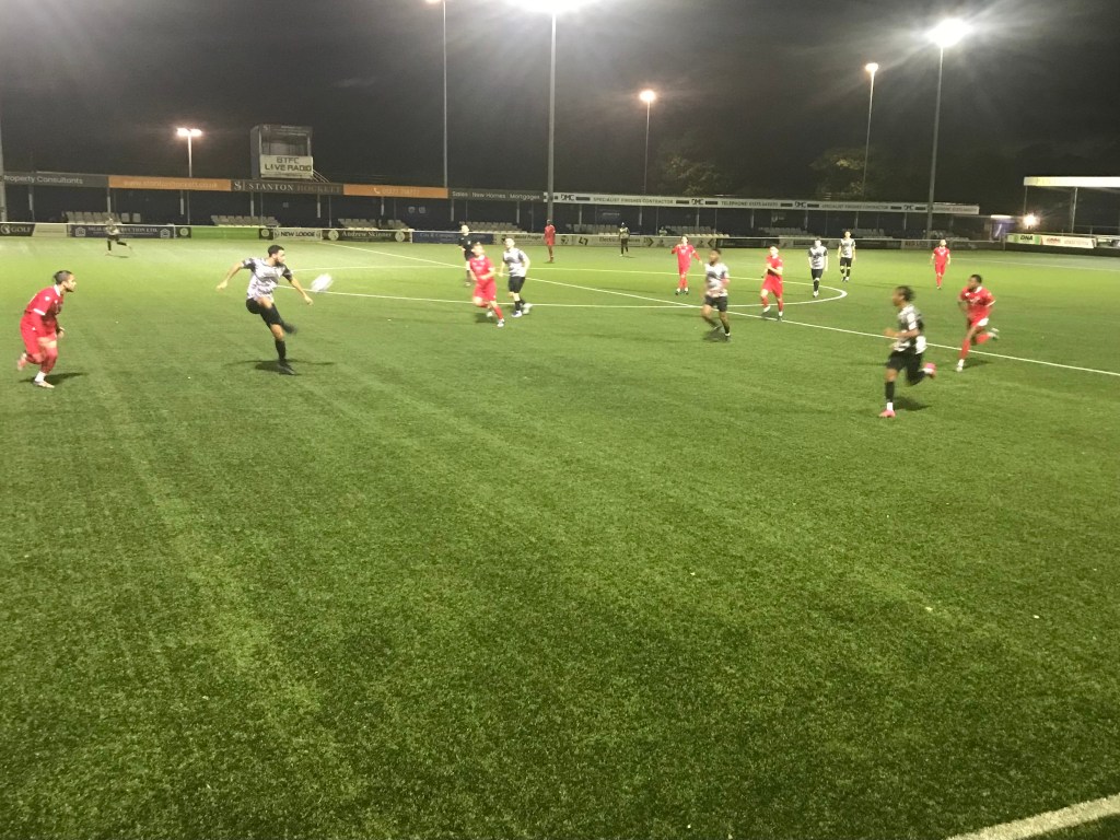 Lymore would go on to score what turned out to be the winning goal of this cup tie, very soon after Elliot Scott had gone close to giving Hutton the lead. Sidhant Nayar’s long kick upfield would bounce on to Dylan Roberts, on the right-hand side of the pitch. The highly influential Lymore forward would take the ball in to the Hutton box, as his low effort on goal was blocked by a Hutton defender, before the ball came to Lymore substitute Gravlyn Kitondo in the centre of the box, and he would finish low in to the goal, prompting celebrations from the Lymore players, 3-4.