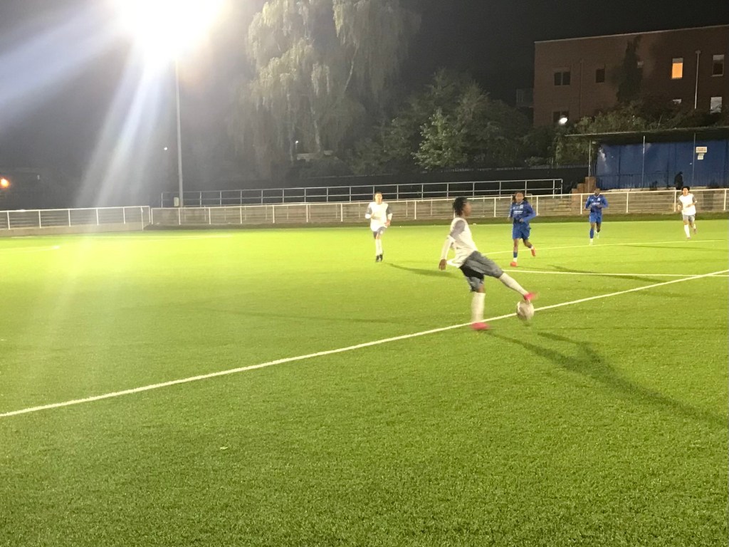 Lymore Gardens would manage this game well, and although there was a wait for the next chance of the game, they were really restricting Dunmow to very little in the way of goalscoring chances. Towards the end of the game and after Lymore had made a number of substitutes, they would go on to create some further chances. One substitute, in Artem Lukash, would hit a powerful low effort which went narrowly wide of Andrew Zambrano’s left-hand post. Then a couple of minutes later, a great Lymore passing move which started in midfield, would end with Konrad Naumowicz playing a short pass to Artem Lukash, on the right-hand side of the Dunmow box. Artem Lukash’s resulting curling effort on his left foot, would hit the goalkeeper’s right-hand post.