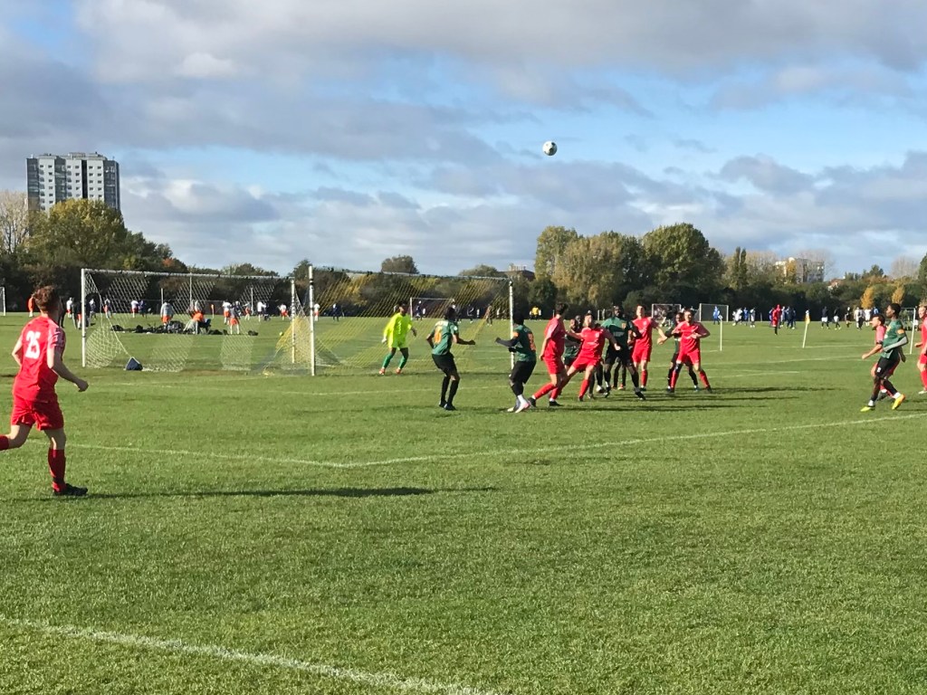 Despite the scores now being at 2-2, Boundary Estate would finish the first half quite well. Tom Braybrooke would head an effort just over Shaun Michel’s goal following a free-kick delivery from out on the right-hand side of the pitch, into the Hacks Gardens box. And then straight afterwards, Tom Carter would see his good effort from the left-hand side of the penalty area, be well kept out by Shaun Michel.